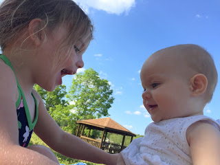 She is now 8 months and beginning to navigate her way around the house. She can crawl but she only does it if she is really driven. For example, to get to the dogs bone (Lily did this too, so gross!), to aget to the ottoman or couch to pull up or to get to someone so they will pick her up. She doesn't seem to like the hardwoods so she is a master of the plank and downward dog. She still prefers solids and has mastered feeding herself. The cheerio phase has arrived. Yay! She loves to be held (I will take the blame for this one ;)) and if you ignore her request she will lose it. Good thing I don't scare easily because this girl can hold her breath. If you didn't know any better you would think something was seriously wrong. I think we have a drama queen on our hands! But with that, she is also sweet and oh so cuddly!